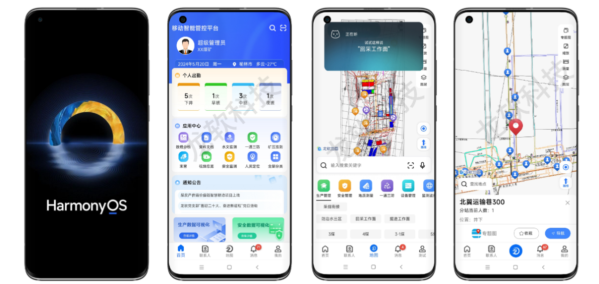 龍軟科技基于Longruan GIS,已完成主要移動端產品(智能管控平臺App)HarmonyOS NEXT原生版本研發。該平臺實現了安全生產數據的管理和查詢、實時數據的全面感知與融合分析、業務流程的在線審批與即時處置,結合鴻蒙原生智能,為礦井的安全生產智能化管理提供保障,助力礦山企業安全管控從“被動處置”向“分析決策、主動預防”躍遷。目前已在晉能控股裝備制造集團內部測試。